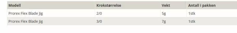 Daiwa Prorex Flex Blade Jig tilbyr fordelen med en fleksibel offsetkrok, perfekt for fiske i vann med tung vegetasjon. Kroken kan enkelt skiftes ut via den delte ringen. Takket være deres spesielle form går Flex Blade Jig veldig grunt til tross for sin høye vekt og er derfor perfekt egnet for målretting på områder med mange vannplanter osv.