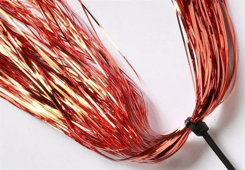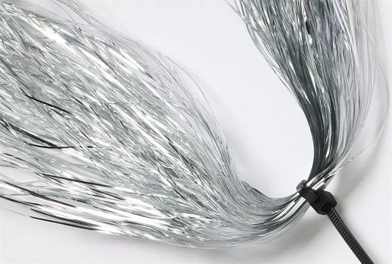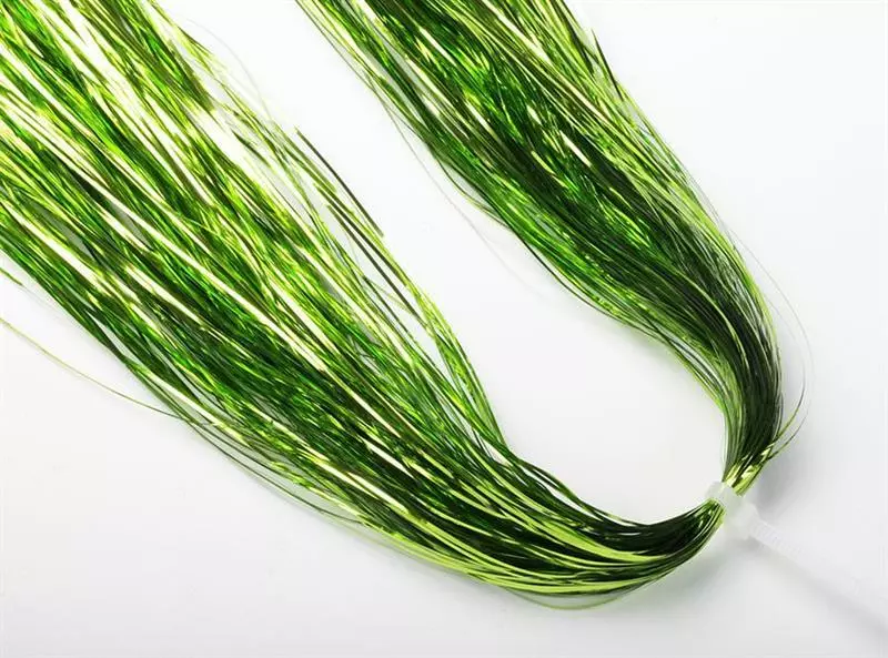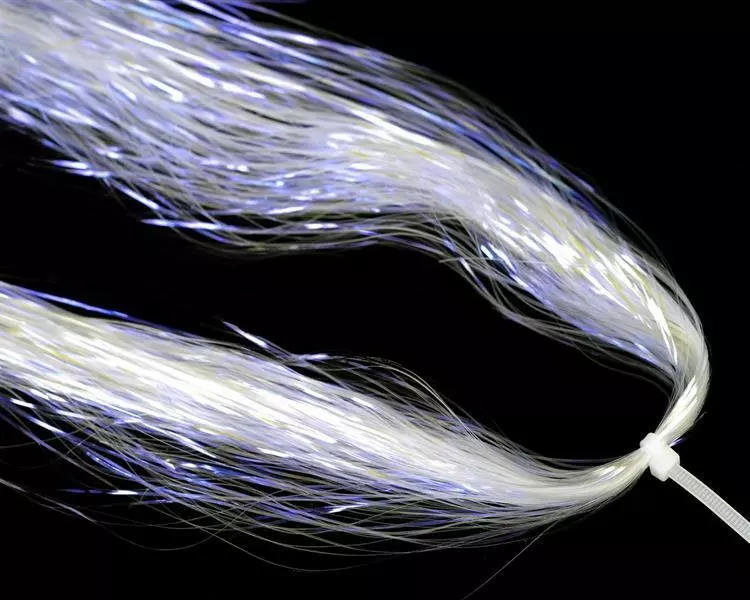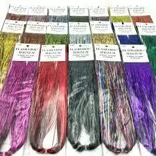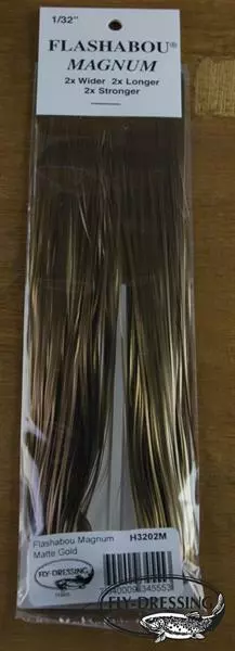 En bredere og sterkere versjon av den populære, høye kvaliteten på flashabou fra Hedron. Perfekt for gjedde og store saltvannsfluer. Inneholder omtrent 400 tråder, 1/32 “brede og 20” lange.