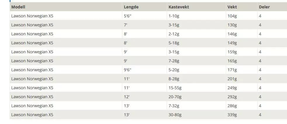 Lawson Norwegian X5, er femte generasjon i denne innholdsrik serien med haspelstenger, utviklet spesielt med tanke på norske forhold. Her er krav til funksjonalitet og kvalitet satt i høysetet! Klingene som er 4-delt, er laget i hele 40 tonns karbon og er lette, spenstige og smekre.