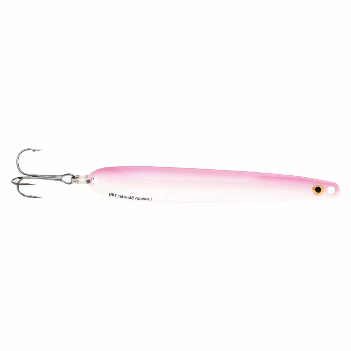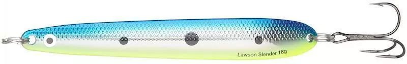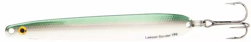 Med en Slender i enden lokker du selv vinterstøle sjøørretter til en matbit. Slender leveres i 12 og 18 g og kan sveives både fort og sakte over grunt vann, samtidig som den opprettholder sin fristende gange!