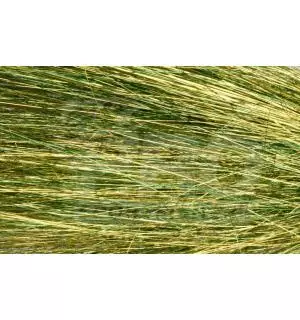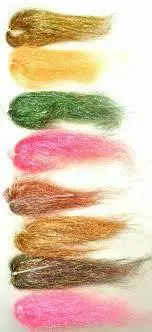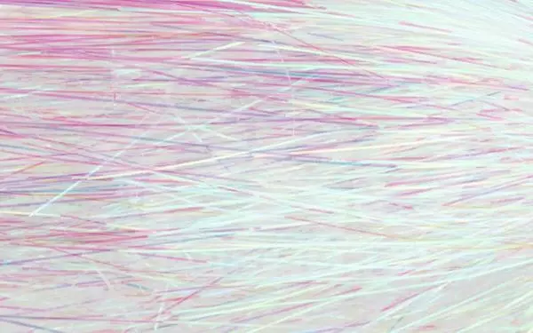 Saltwater Angelhair . Dette er tynne og sterke flashfibre som gres og blandes inn i vingematerialet for å gi hårvingefluer ekstra glans og farge. Kan også brukes som kroppsdubbing.