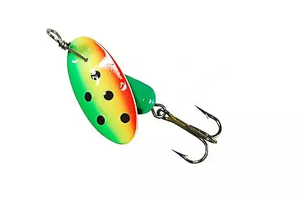 En spinner med skarpe farger er veldig nødvendig om det er grumsete vann eller alt annet feiler. Da gjelder det å prøve det lille ekstra som lokker til hugg. FT/D har grønn, gul og rød farge på både kropp og spinnerblad, samt sorte prikker på selve spinnerbladet.