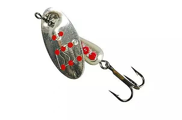 Kombinasjonen av farger og bevegelser frister selv den tregeste fisk til hugg. Noen av spinnerne har også fått lokkende fluekrok.