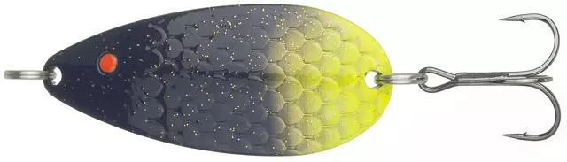 Søvik-Laksen er en velprøvd gammel skjesluk til laks hvor moderne fargesetting og overflatebehandling kombinerer det beste fra to tider. Den store buede overflaten graver seg ned i strømmen mot bunnen, der laksen har sin standplass. Søvik Laksen er et perfekt valg til laksefiske i juni når elvene er flomstore og kalde. Prøv den også der strømmen er sterkest og elva er dypest når elva blir varmere.