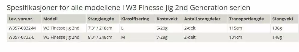 Westin W3 Finesse Jig 2nd Generation er den ultimate stangen for lett til middels finesse jigging fiske etter abbor og gjørs. Det er også en fantastisk dropshot-stang!