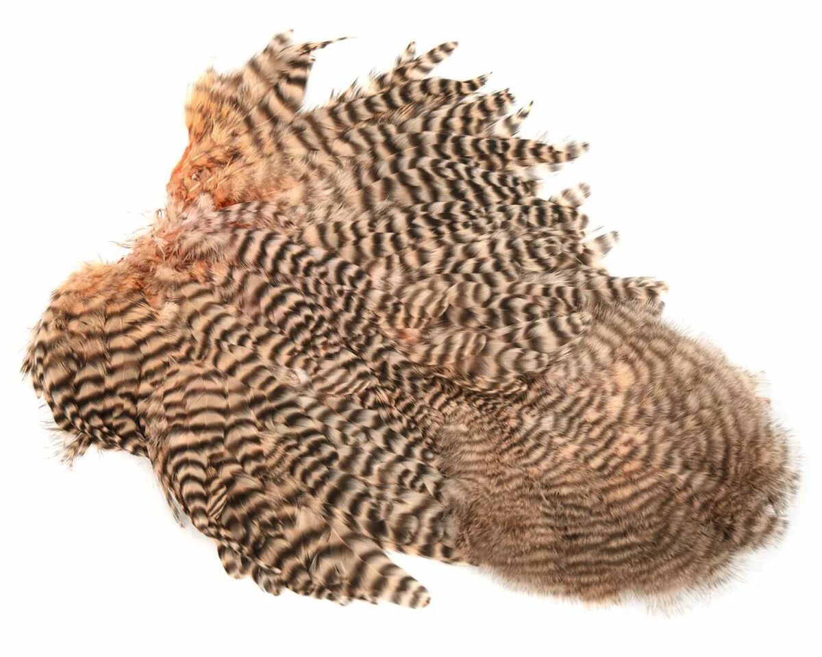 American Hen Cape – Myke fine fjær som brukes mye til fronthackle på laksefluer og våtfluer. Hver fjær har tette fibre som gir god fylde. Kraftig og jevnt innfarget.