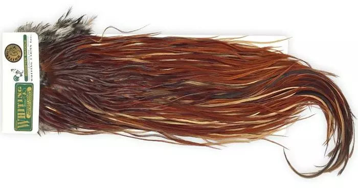Et enestående utvalg med genetiske nakker og saddler, avlet fram gjennom mange generasjoner av nøye utvalgte hønseraser. Fra Henry Hoffmans pionerarbeide på 60-tallet, via Tom Whitings overtakelse i 1989, til dagens produktlinje. Fremdeles er det tørrfluenakkene og –saddlene Whiting er aller mest kjent for, og hvor kvaliteten er overlegen i forhold til øvrige alternativer på markedet. De siste årene har også sett mange nye spesialfjær til andre bruksområder, blant annet American hane- og hønenakker til laks- og kystfluer, Coq de Leon og nå de nye Spey nakkene.