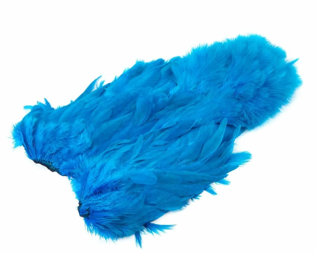 Two very unique feathers in 1 pelt. The first feather, the soft hackle, is a wide, webby soft feather great for large collars on salmon, steelhead, bass, and saltwater flies. The second feather, the chickabou is a smaller marabou. Much finer than turkey marabou, the chickabou is excellent for small streamers, leech patterns, dragonfly, and damselfly nymphs.